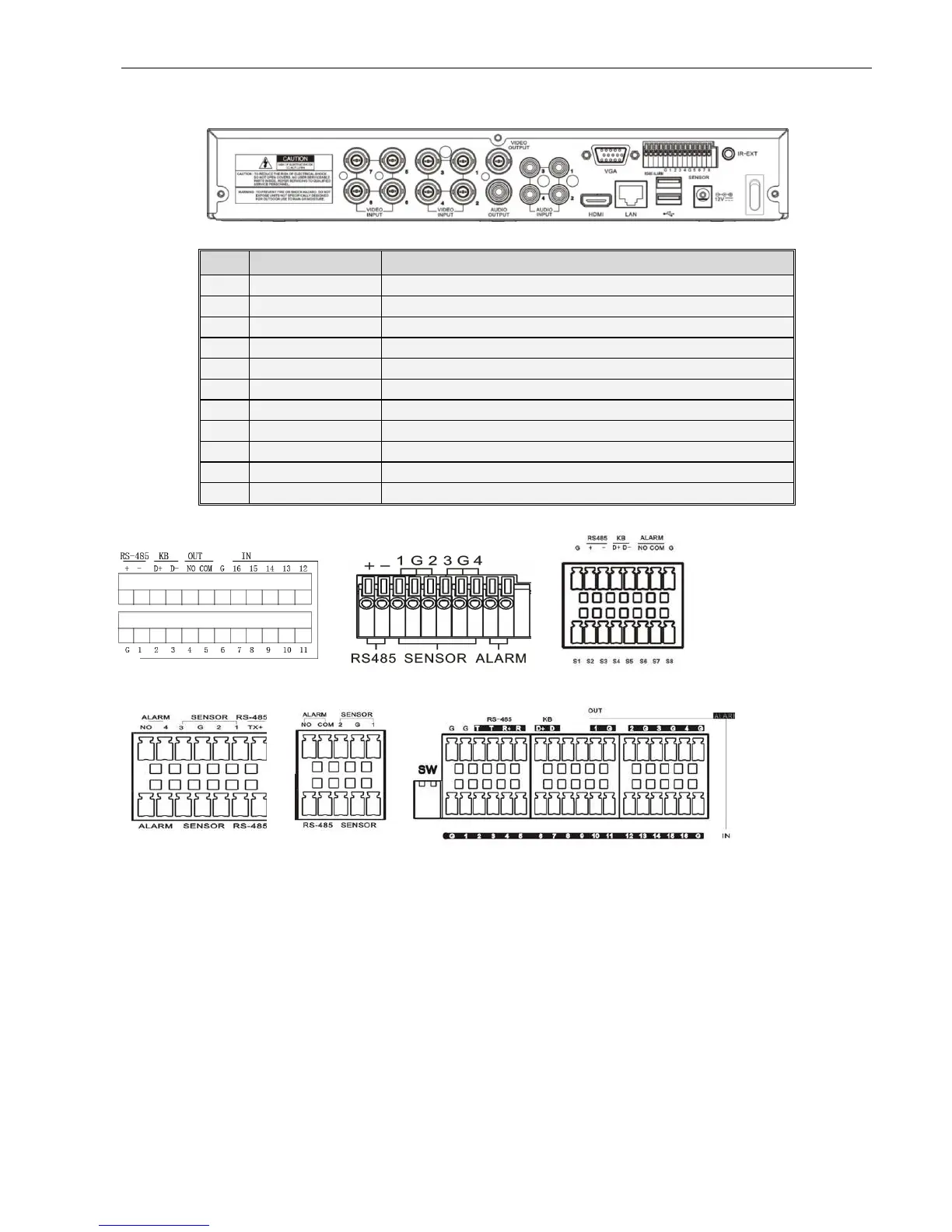RS-485/Sensor/Ala RS485/Sensor/Alarm interface (see pin outs below)