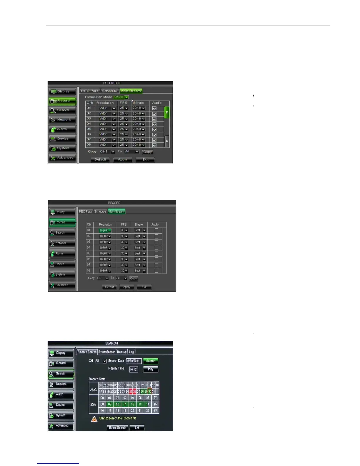 As for the DVR of SDI series, the set is below: