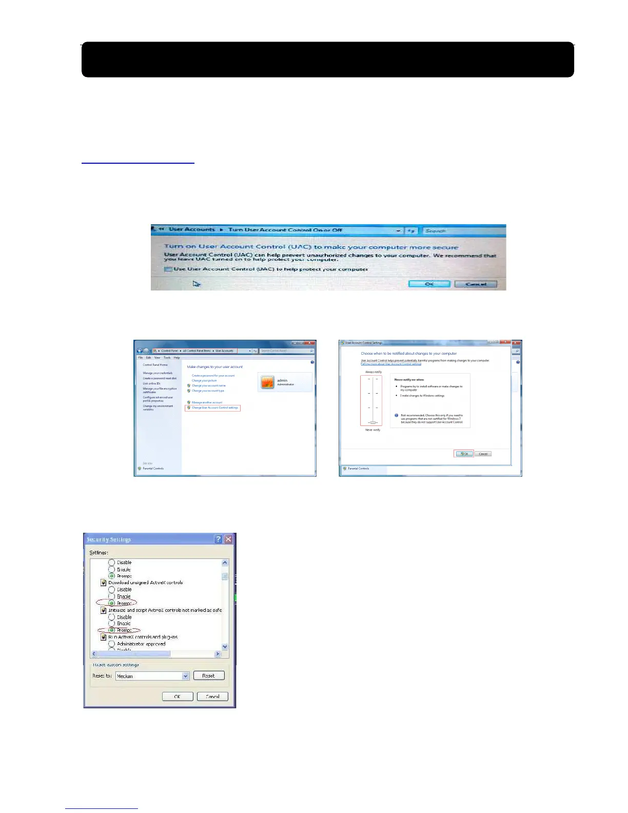 please refer to the below picture: Start →setup→ control panel (Tick “√” use UAC to help protect your