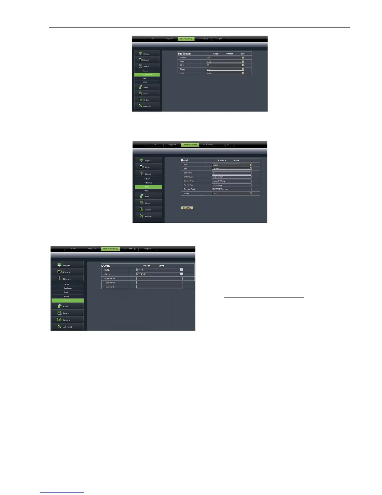 Click [Email setting] option to allow you set alarm email configuration parameters shown