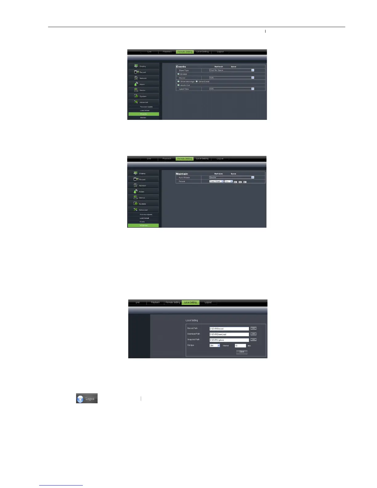 Under <Local setting> option, user could set record path of record file (Live record and Playback clip file),