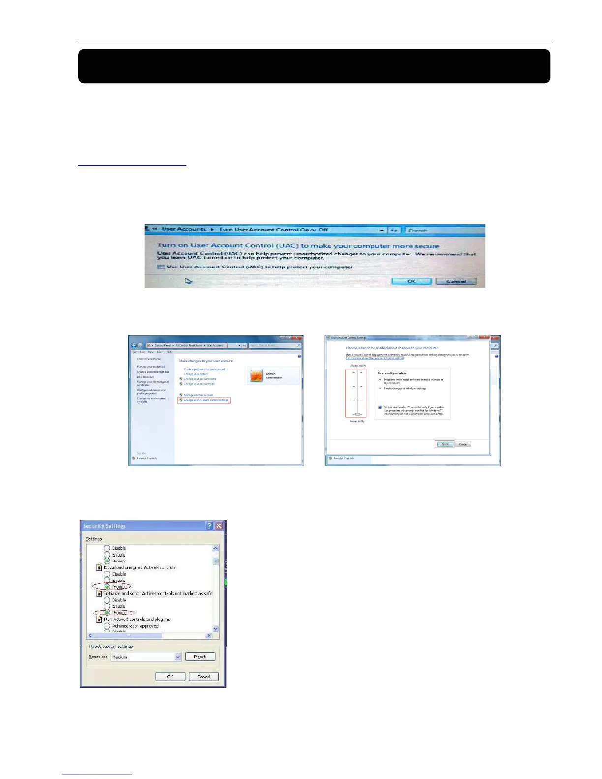 please refer to the below picture: Start →setup→ control panel (Tick “√” use UAC to help protect your