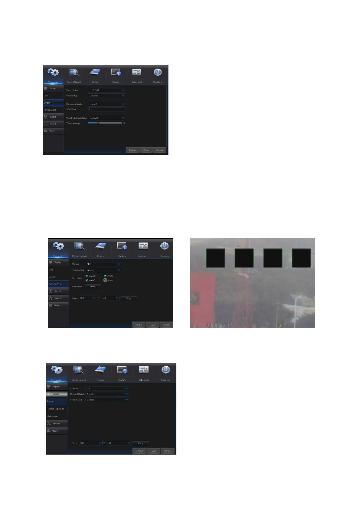 Go to “Main Menu” → “Parameter” → “Display” → “Private Zone” to enter into the interface