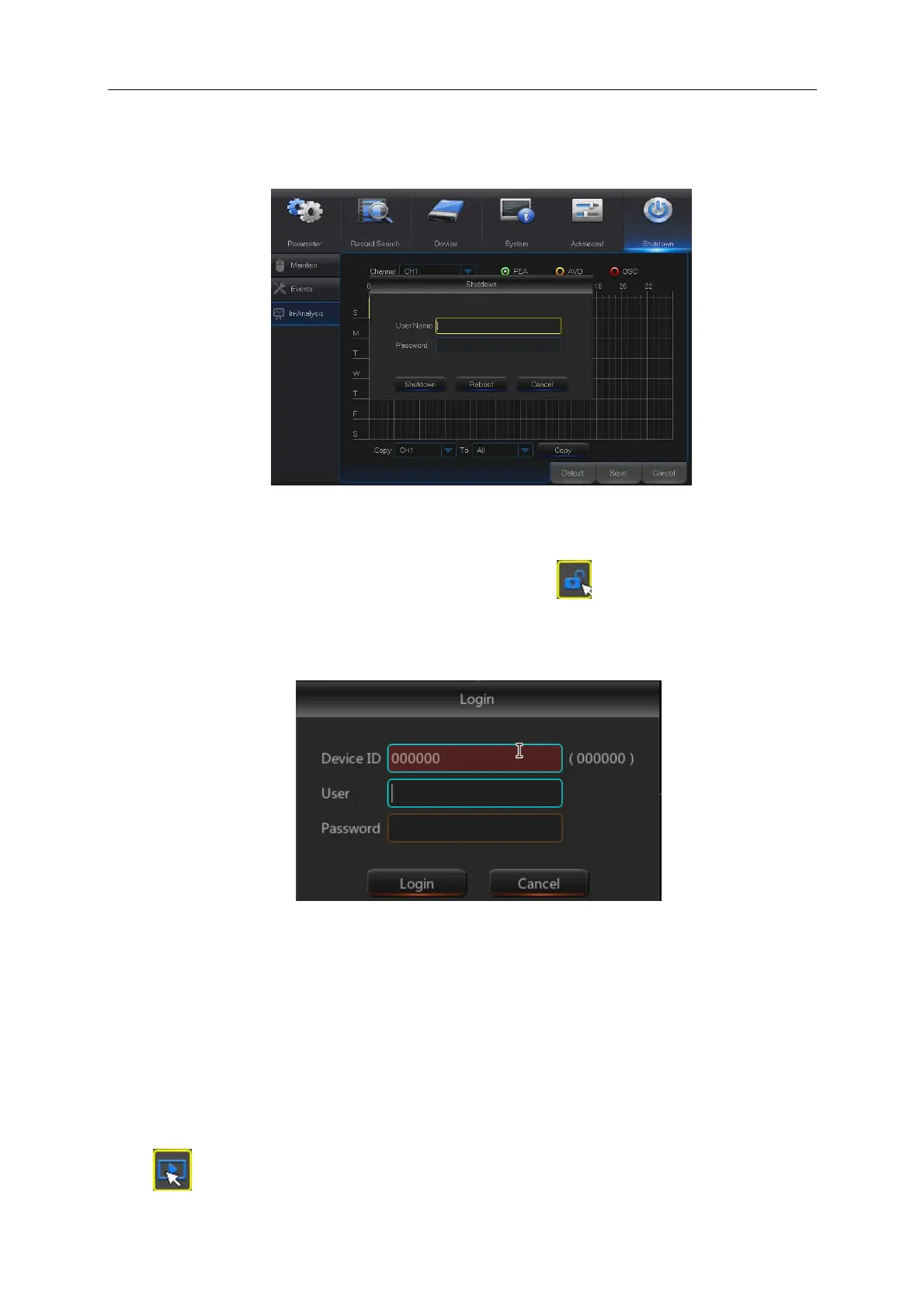 away from DVR and the system interface will be locked. User has to input Device ID, User Name