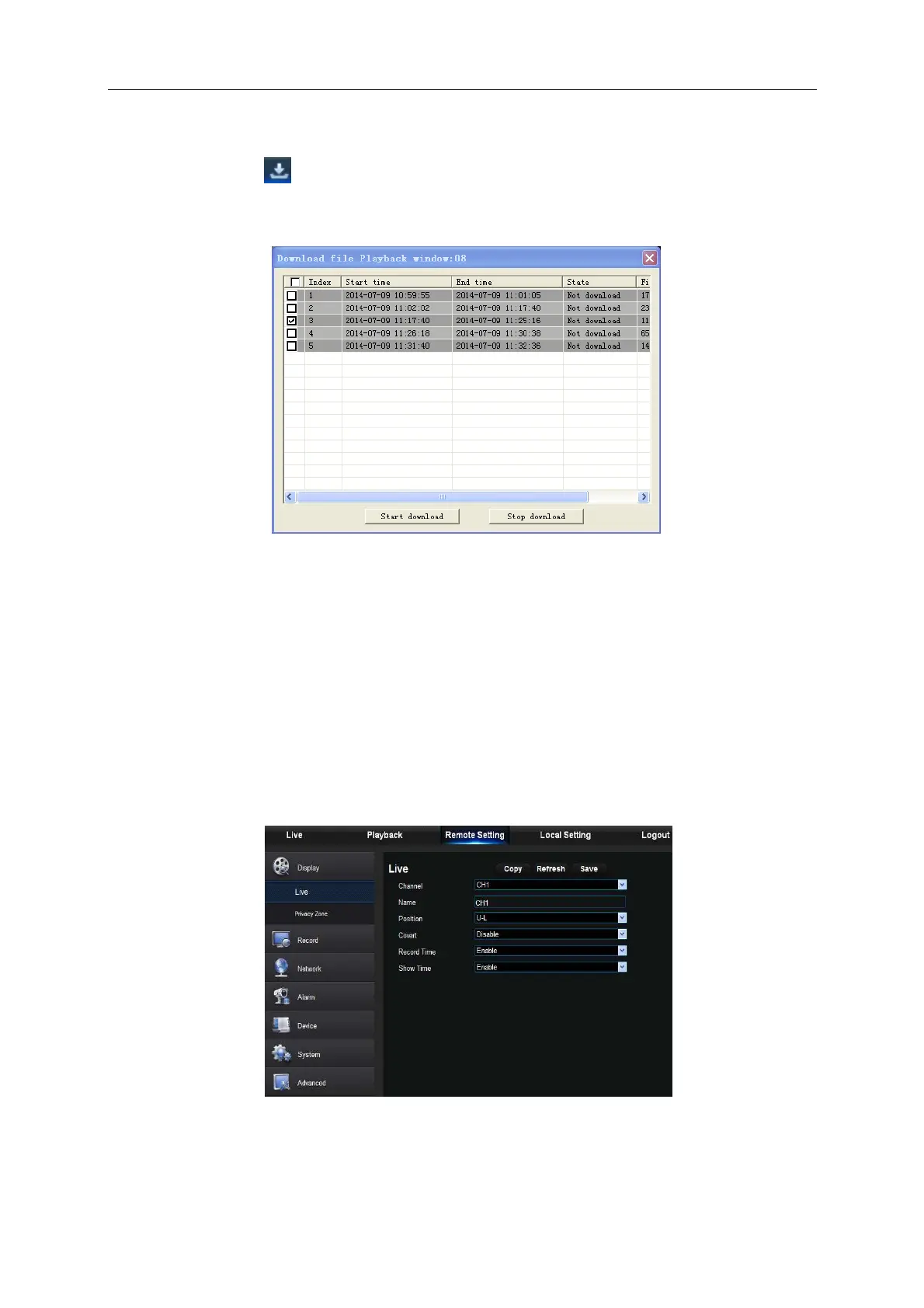 the record file in sequence and save to local PC. The downloading file will be displayed in