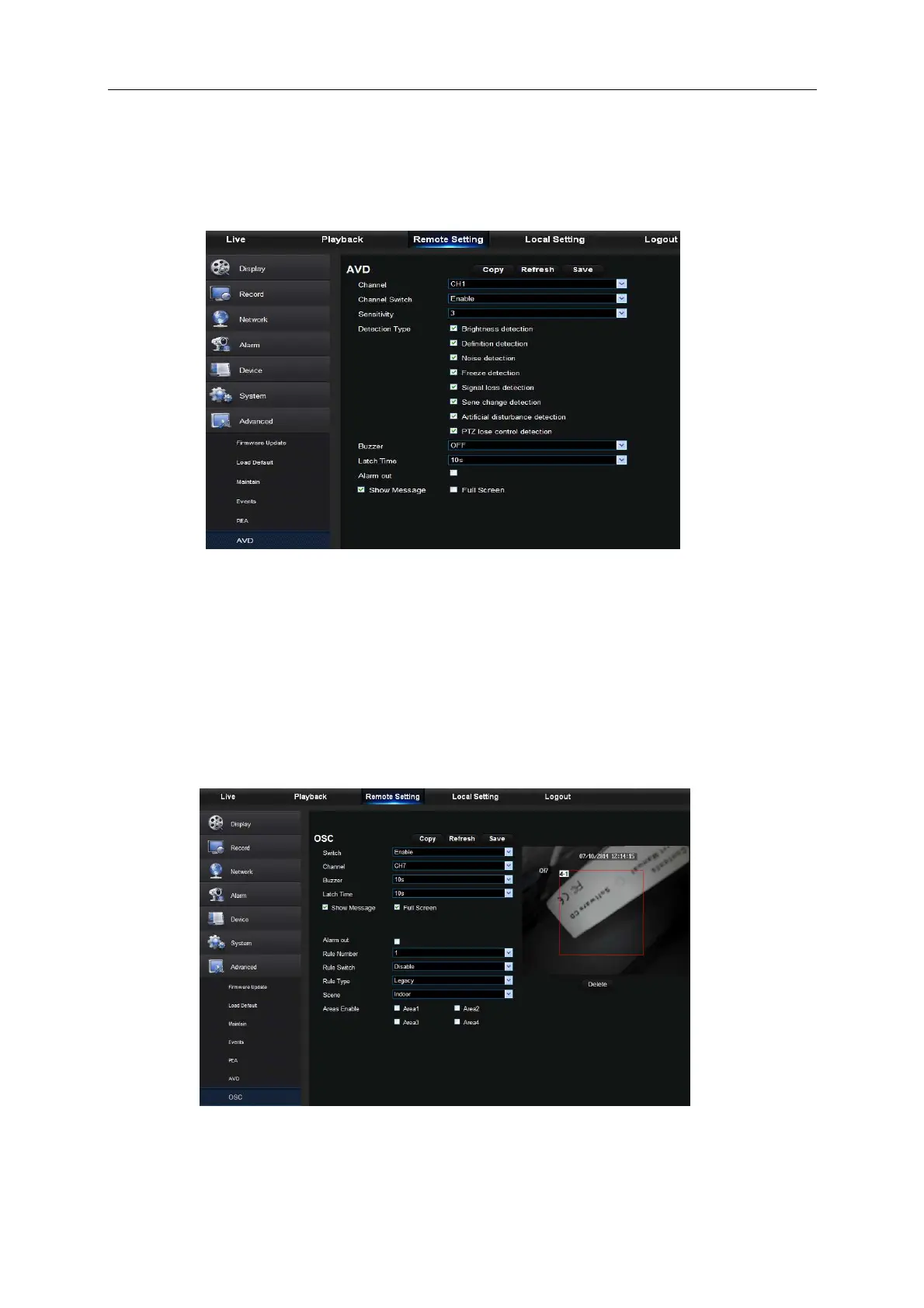 OSC includes two functions, i.e. legacy detection and lost detection. OSC can set up to 4 rules in a