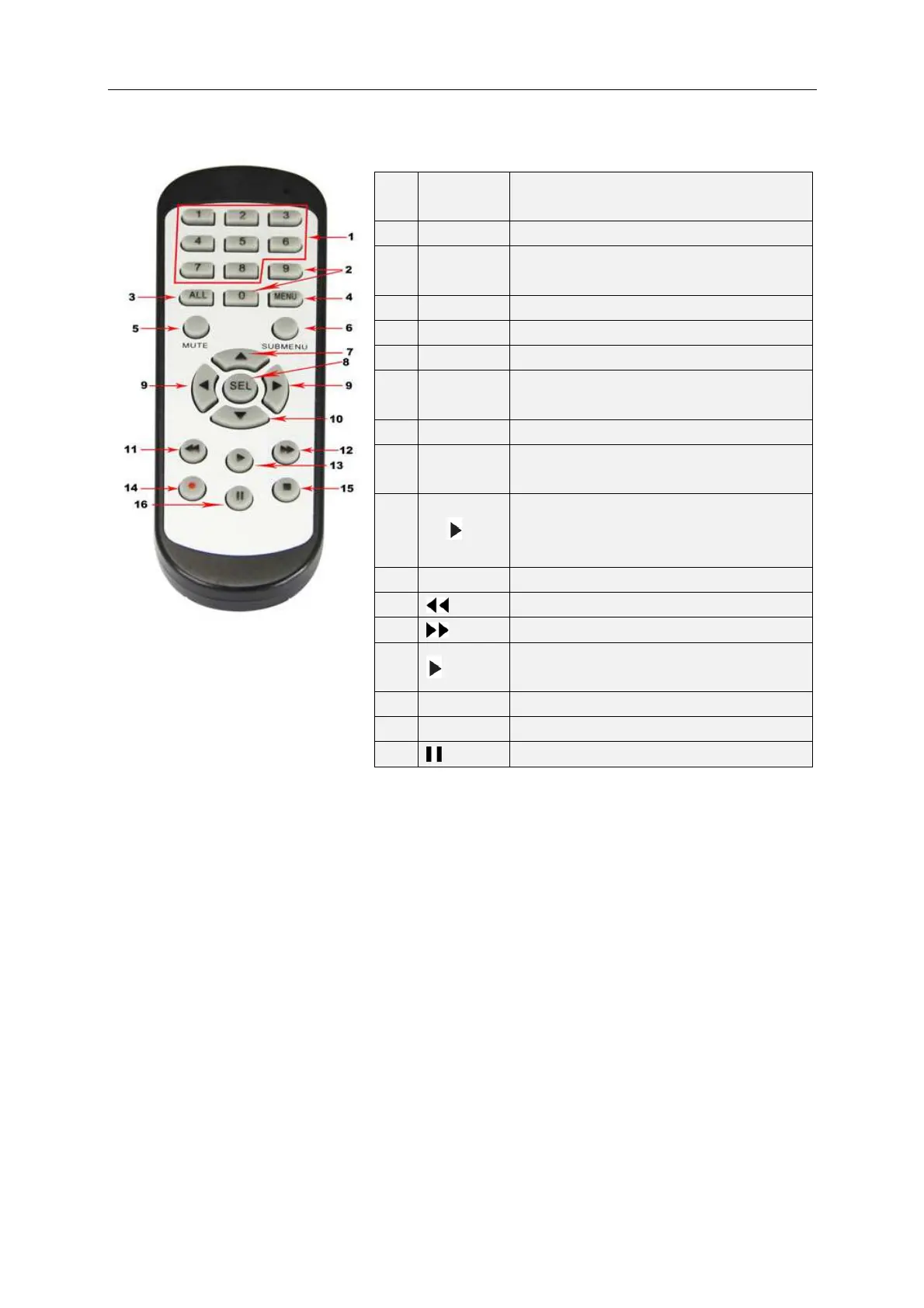 1 1-8 Channel select 1-8; Numeric key