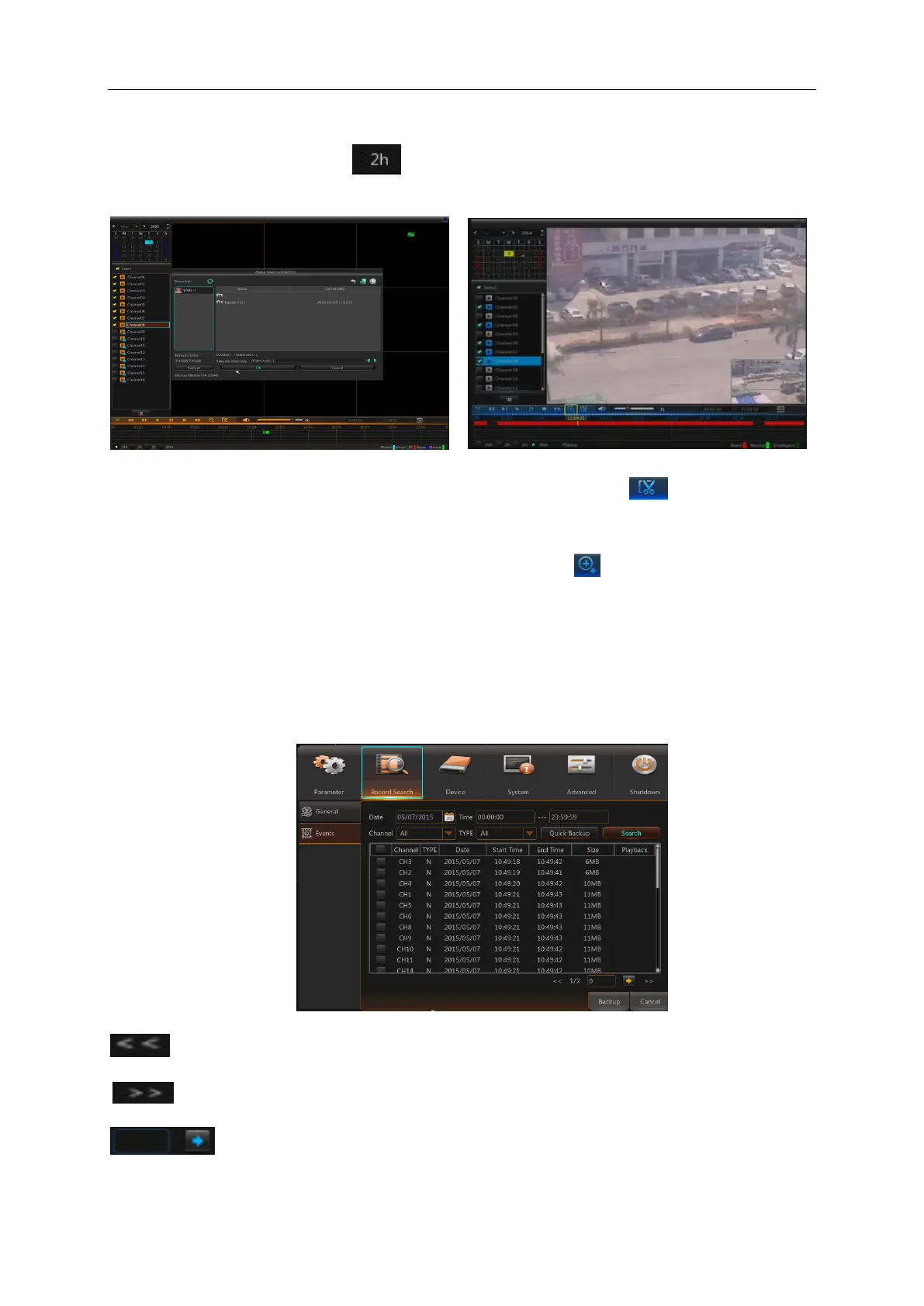 Clip and backup: When it is under single channel playback, the [ ] icon will appear in