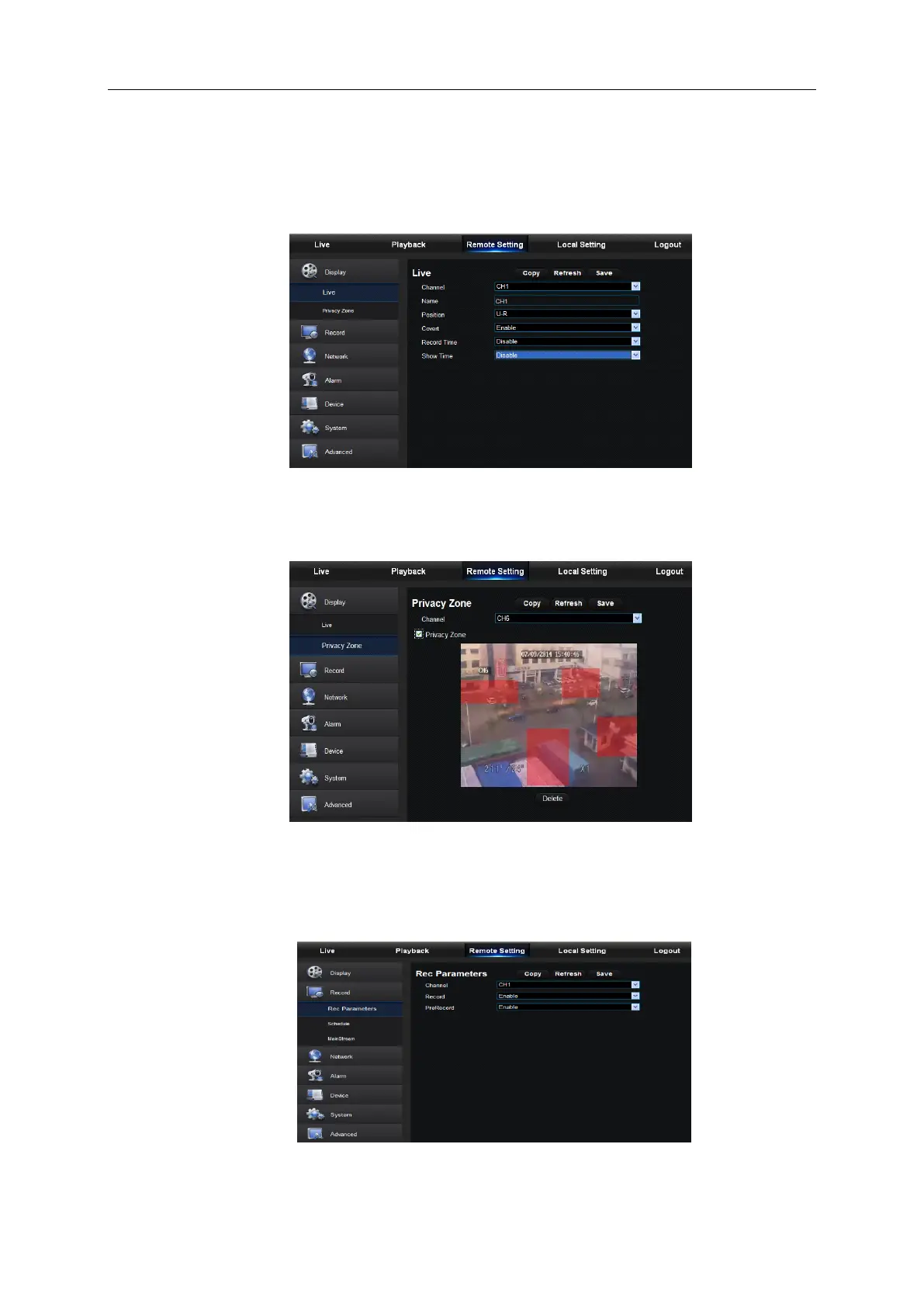 2) Privacy Zone: Each channel can set 4 privacy zones, as shown in Picture 6-14. The relevant