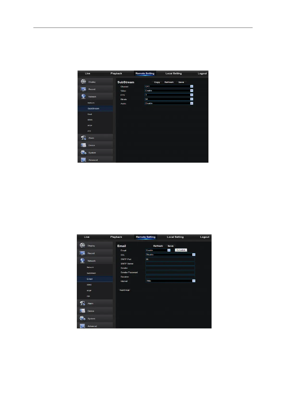 Enable, Interval and Email Schedule, etc. Detailed parameters should be consistent with DVR