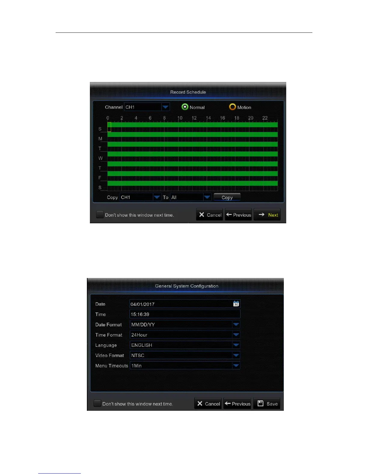 recording mode for each channel. The recording schedule lets you set up a schedule like, daily
