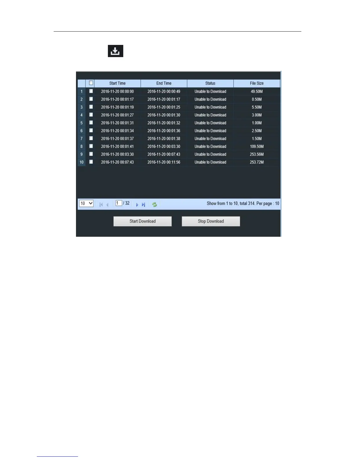 Click download icon “ ” on the control bar to display all the matched record file according to