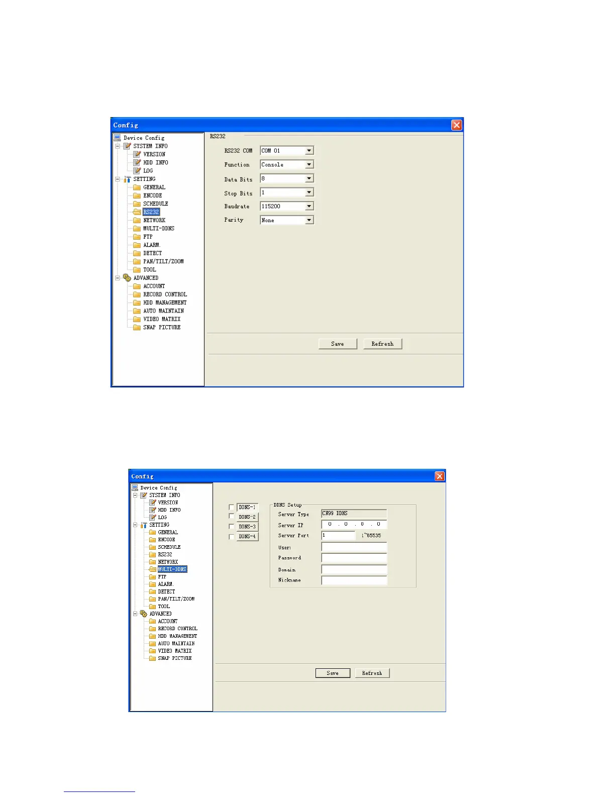 Here you can select DDNS type. This operation needs DVR device supported. See