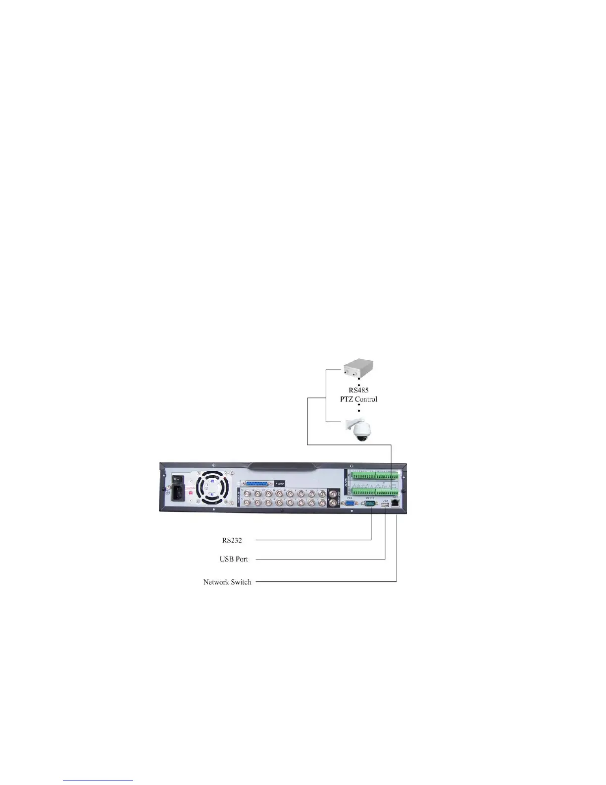 1. Connect RS485 A,B on the DVR rear panel.