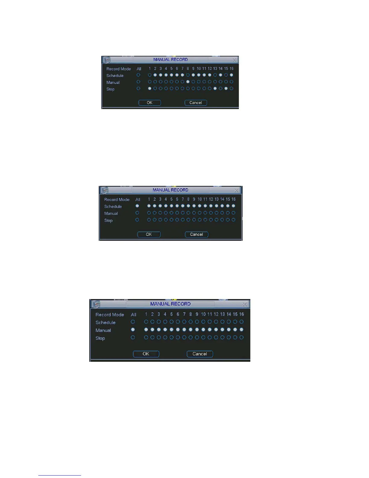 Highlight ○ below All, you can enable all channel recording.