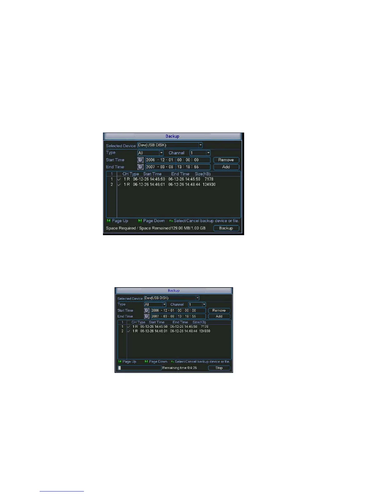 only backup files with a √ before channel name. You can use Fn or