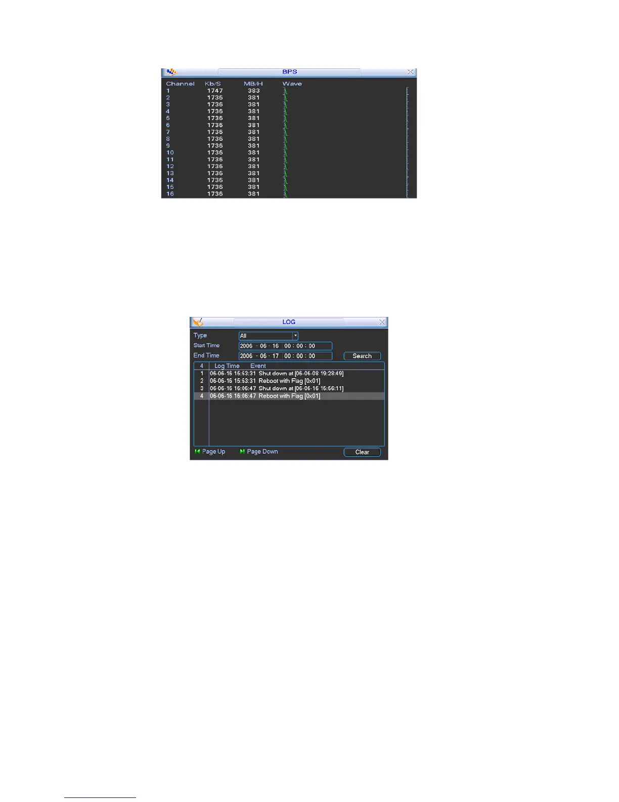 alarm event, record operation, log clear and etc.