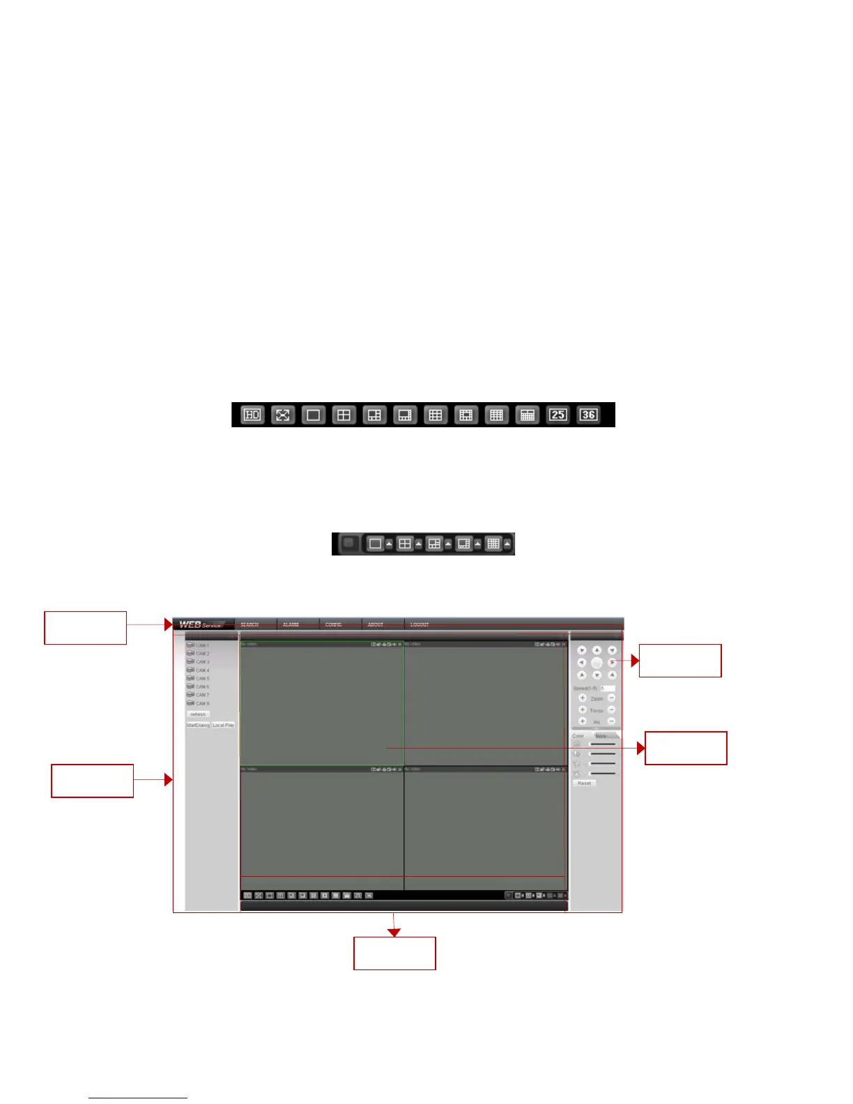Section3: there are PTZ (chapter 7.2.2), color (chapter 7.2.3) button and you can