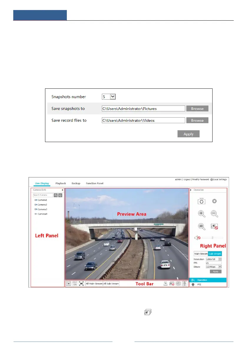 “Browse” to set the snapshot path and record path as shown below. Click the “Apply” button to