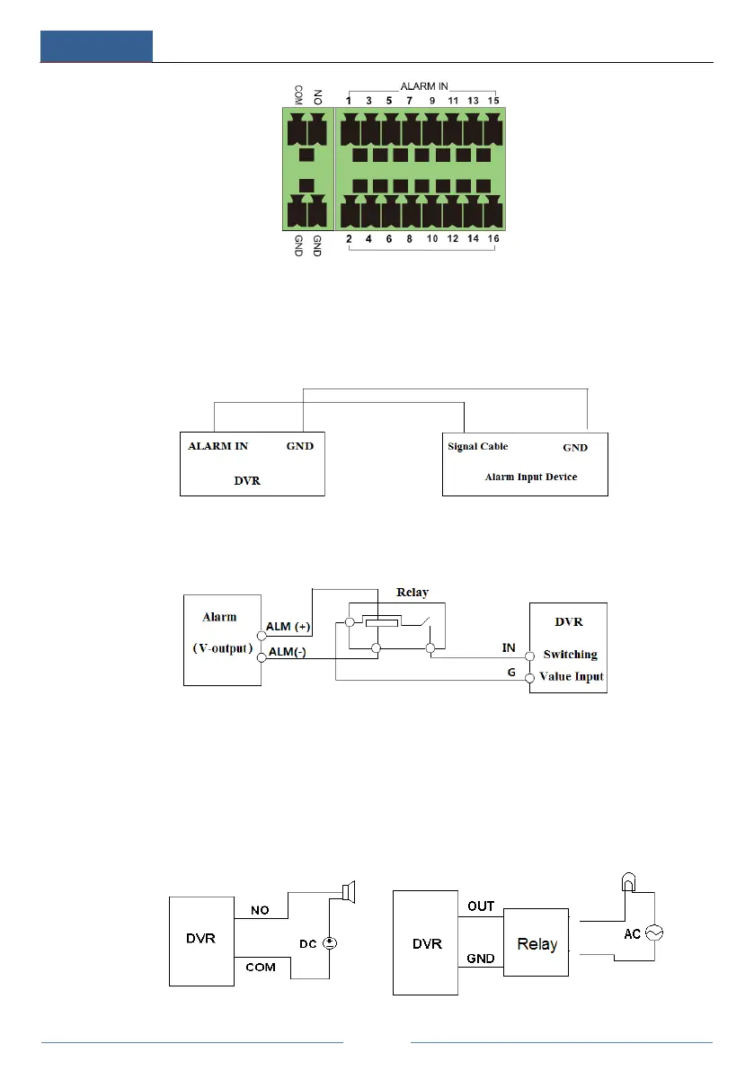 tighten the screws. Provided that the external alarm output devices need power supply, you can