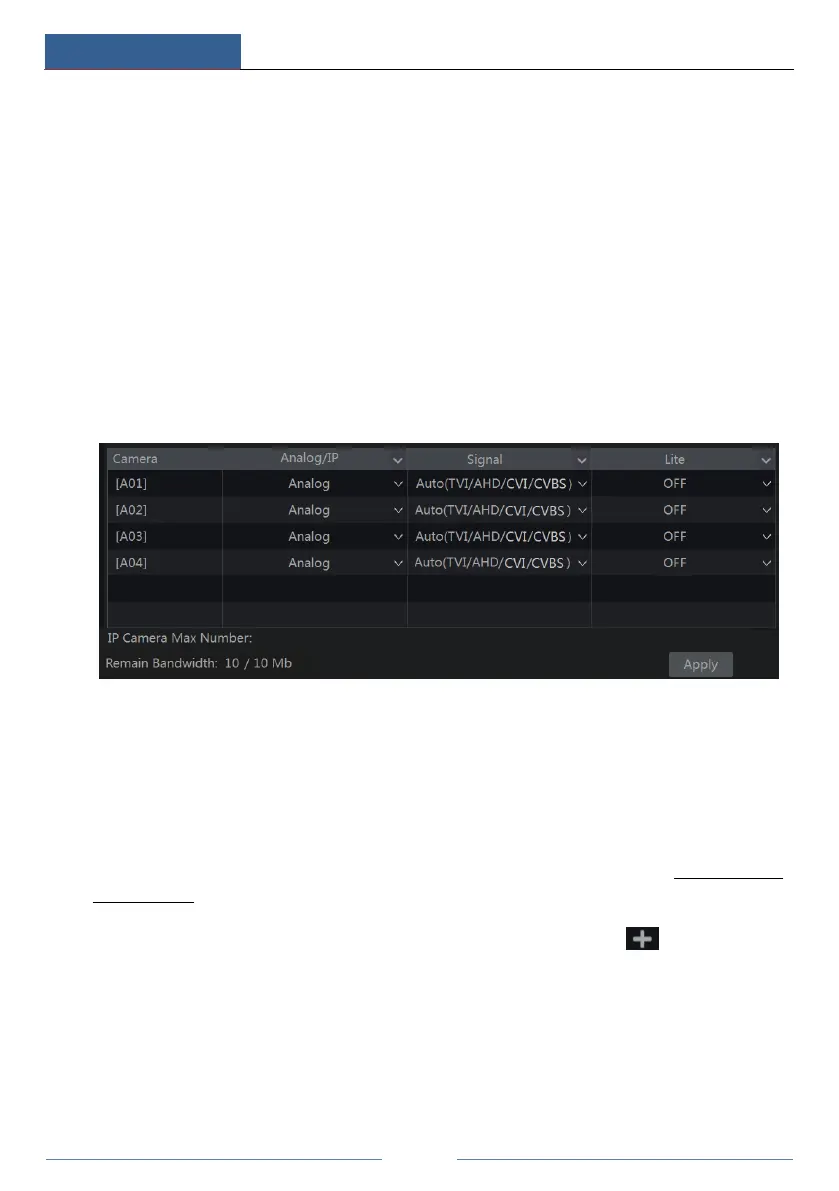 The network of the DVR should be set before adding IP camera (see 11.1.1 TCP/IP