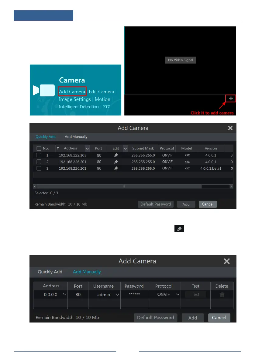 Check the cameras and then click Add to add cameras. Click to edit the cameras IP