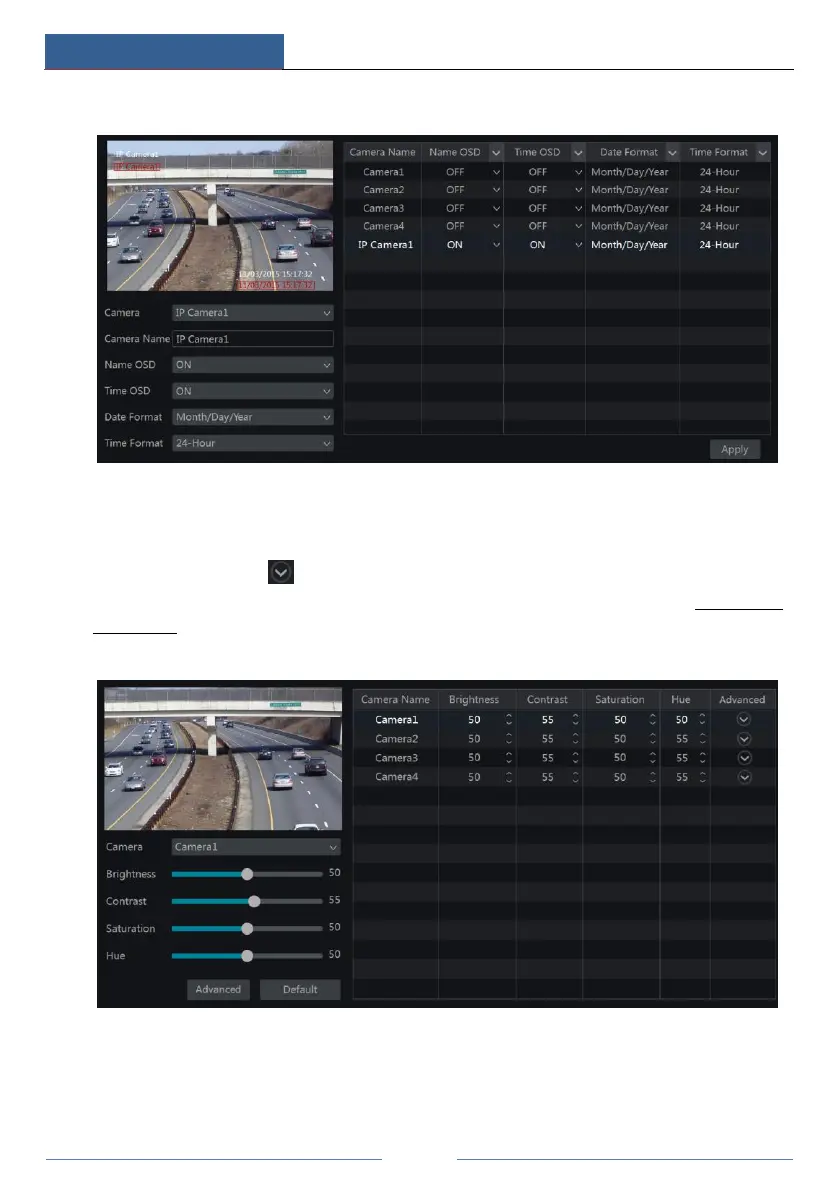 “Advanced” button or in the camera list on the right side of the interface to pop up