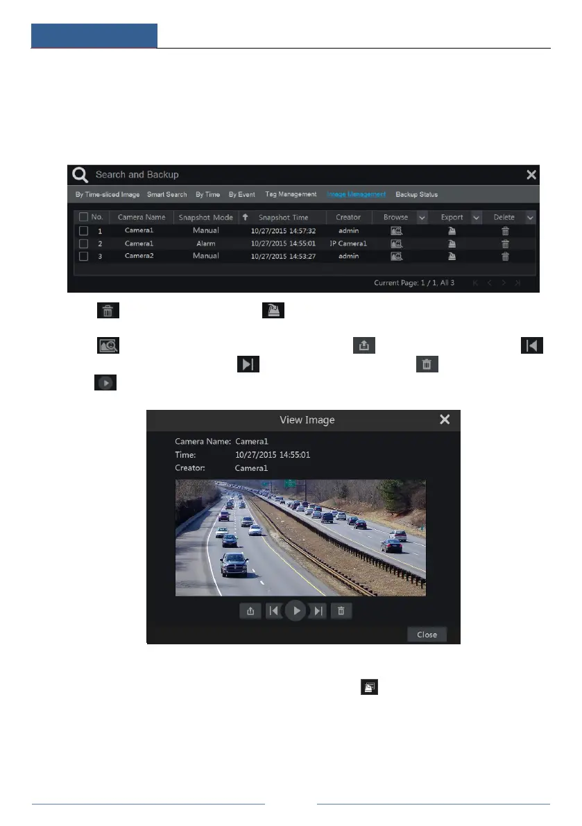 to view the previous image; click to view the next image; click to delete the image;