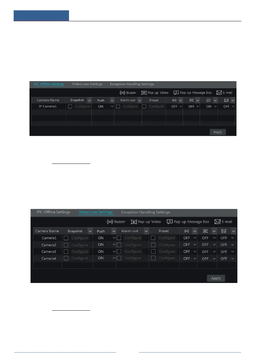 ① Click StartSettingsAlarmExceptionVideo Loss Settings to go to the interface as