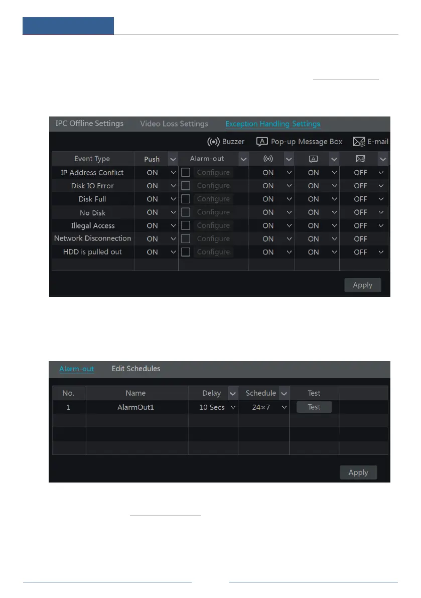 ③ Click “Apply” to save the settings. You can click “Test” to test the alarm output.