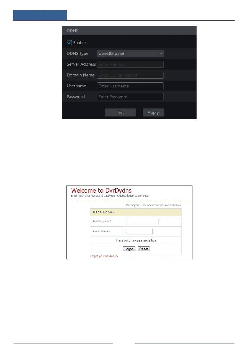 username and password according to the selected DDNS type. Click “Test” to test