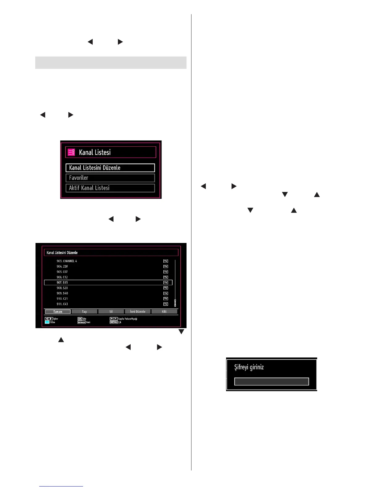 veya “ tuşuna basınız. Kanal Listesi menüsünde