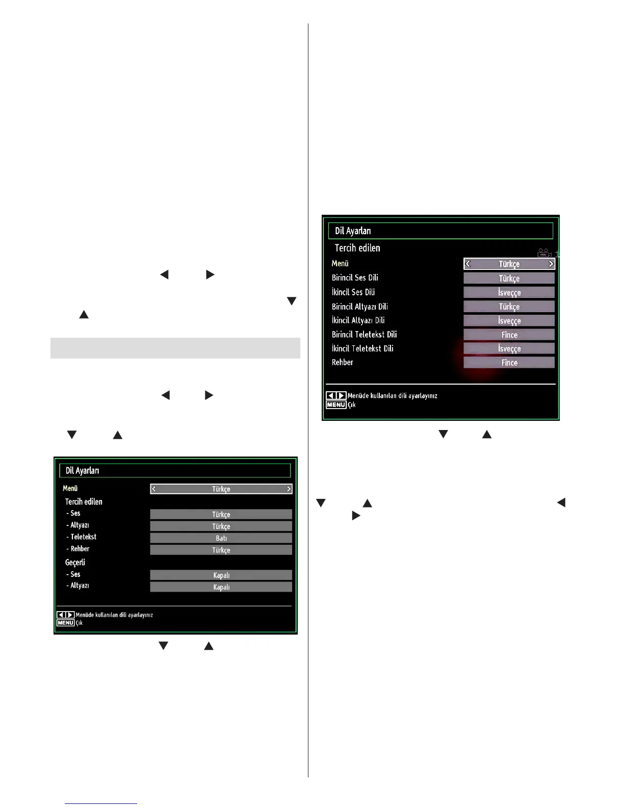 Bu menüyü kullanarak TV’nizin dil ayarlarını