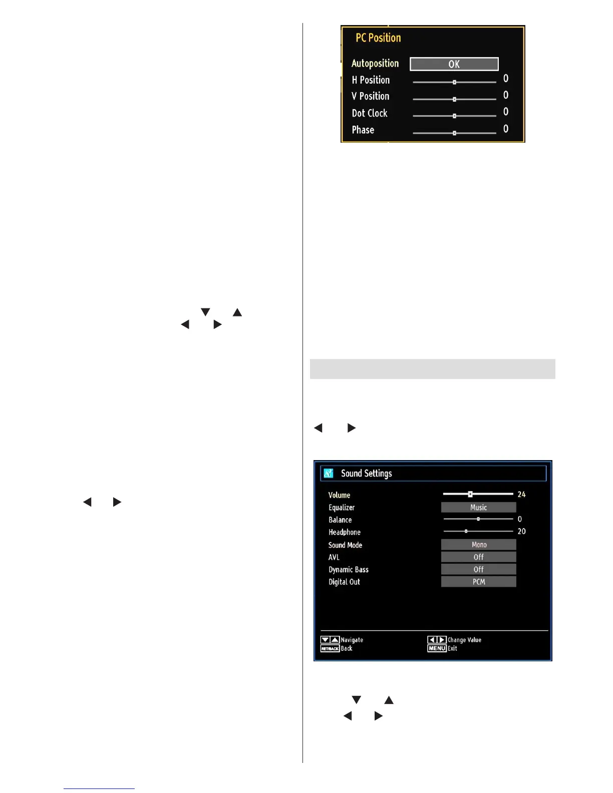 “ ” or “ ” button. Press OK button to view Sound