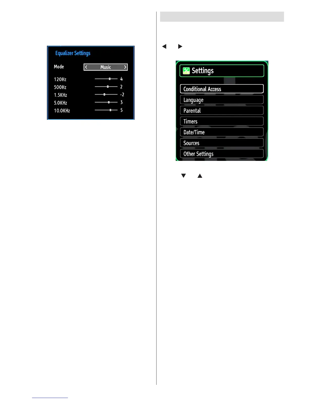 Equalizer: Press OK button to view equalizer sub-