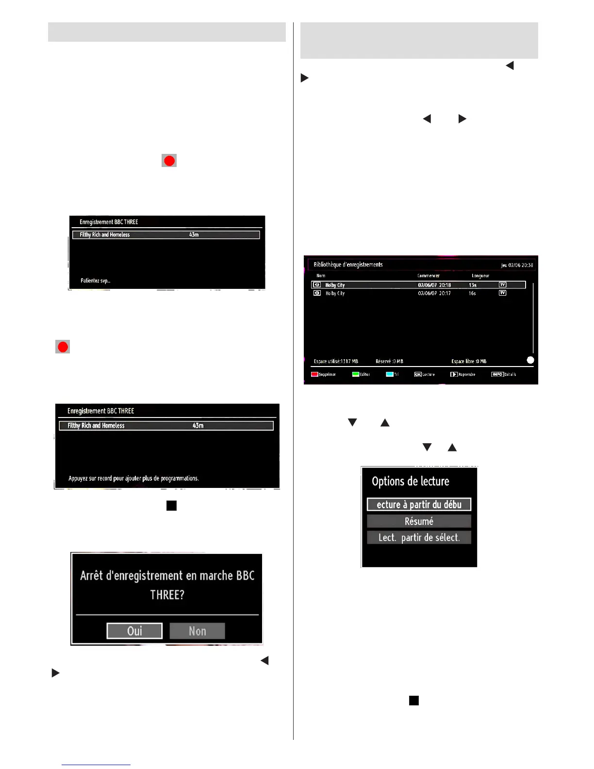 • Lire à partir du début: Lit l’enregistrement à partir