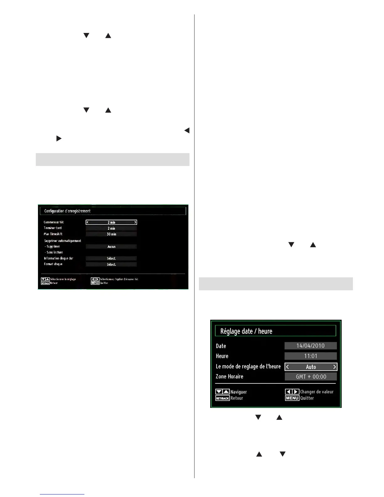 • Utilisez le bouton “ ” ou “ ” pour sélectionner Date /