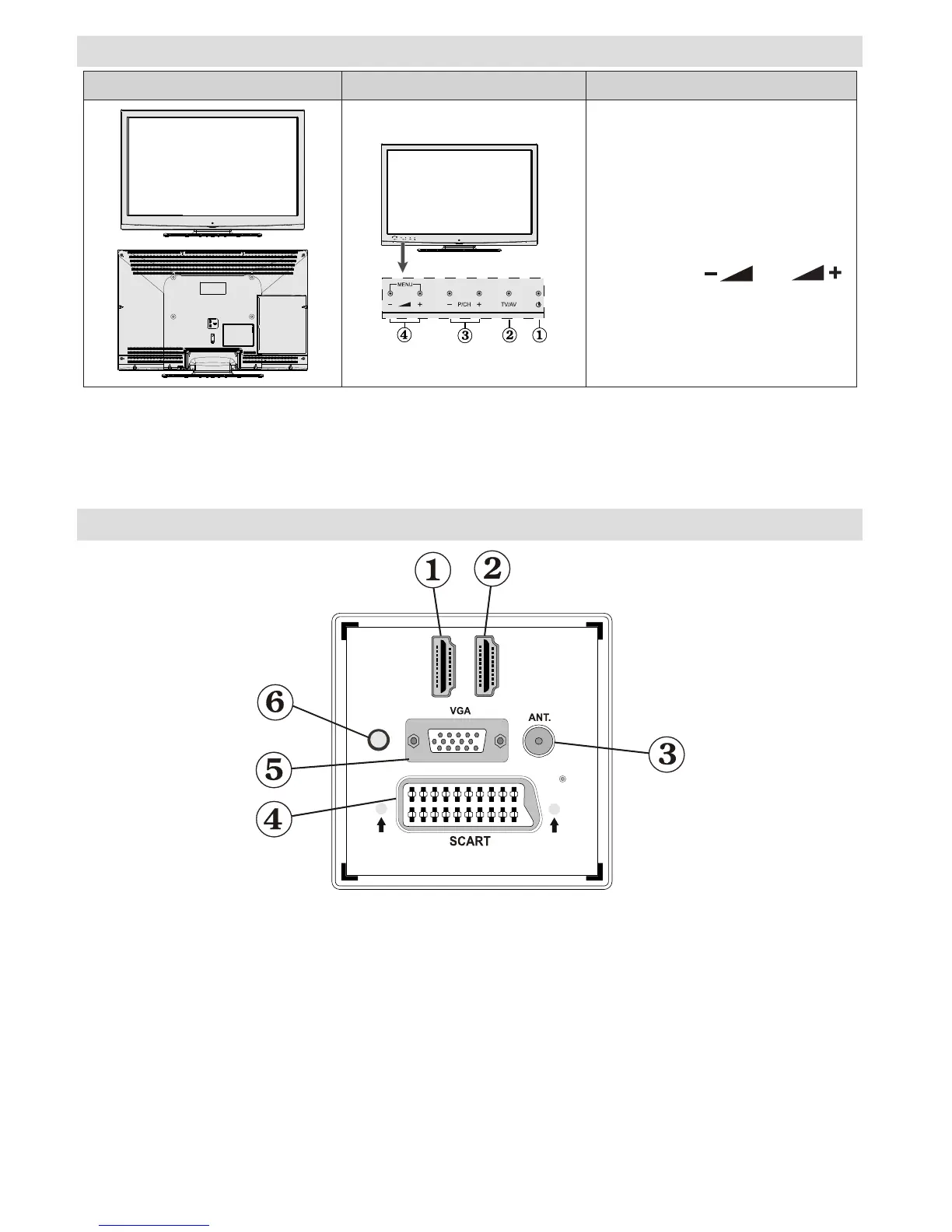 4. SCART input or output for external devices. Connect the SCART cable between SCART socket on TV and
