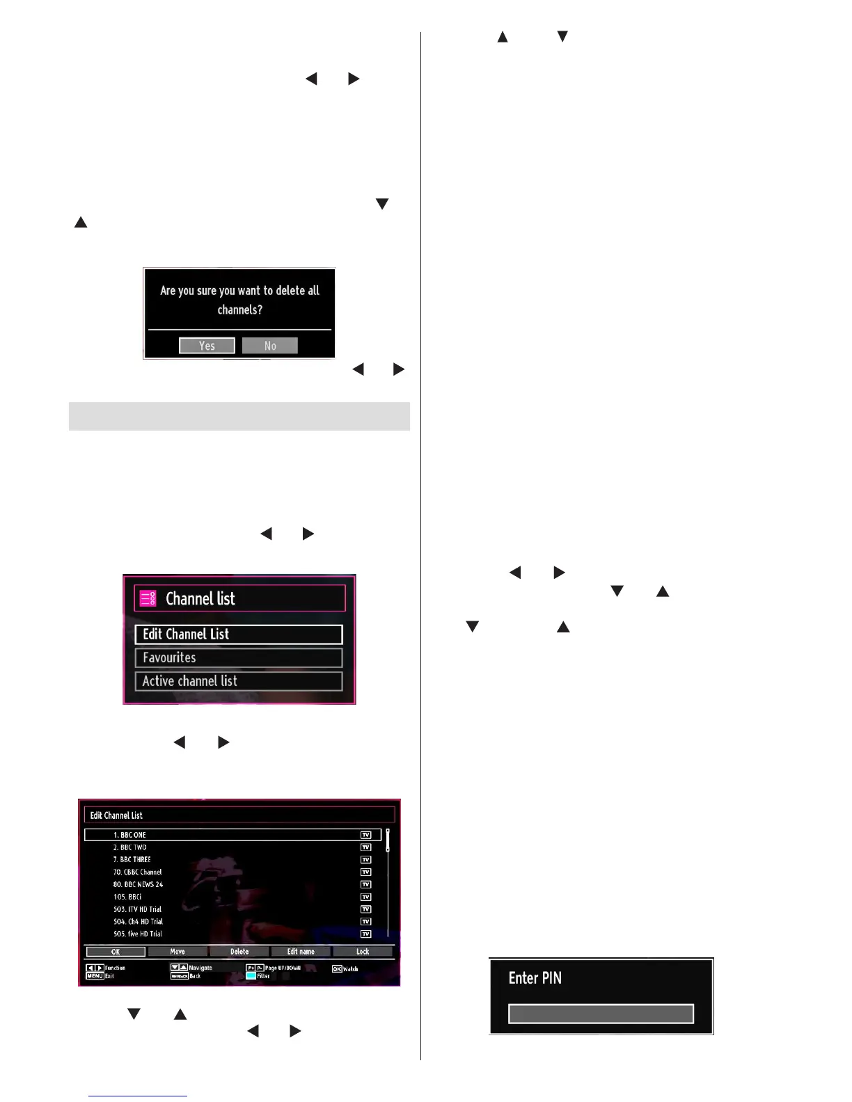 channels. Use “ ” or “ ” and OK buttons to select