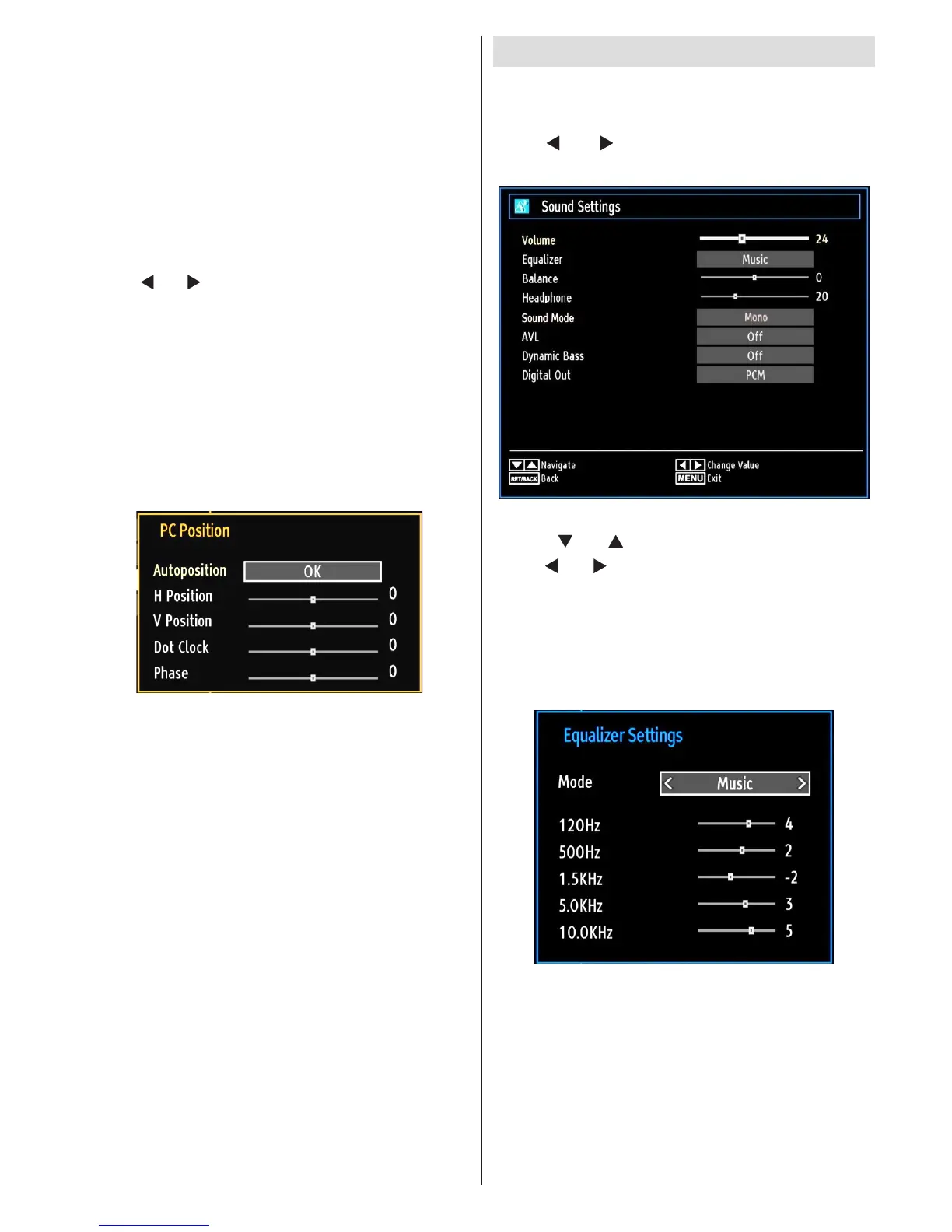 Note: Equalizer menu settings can be changed