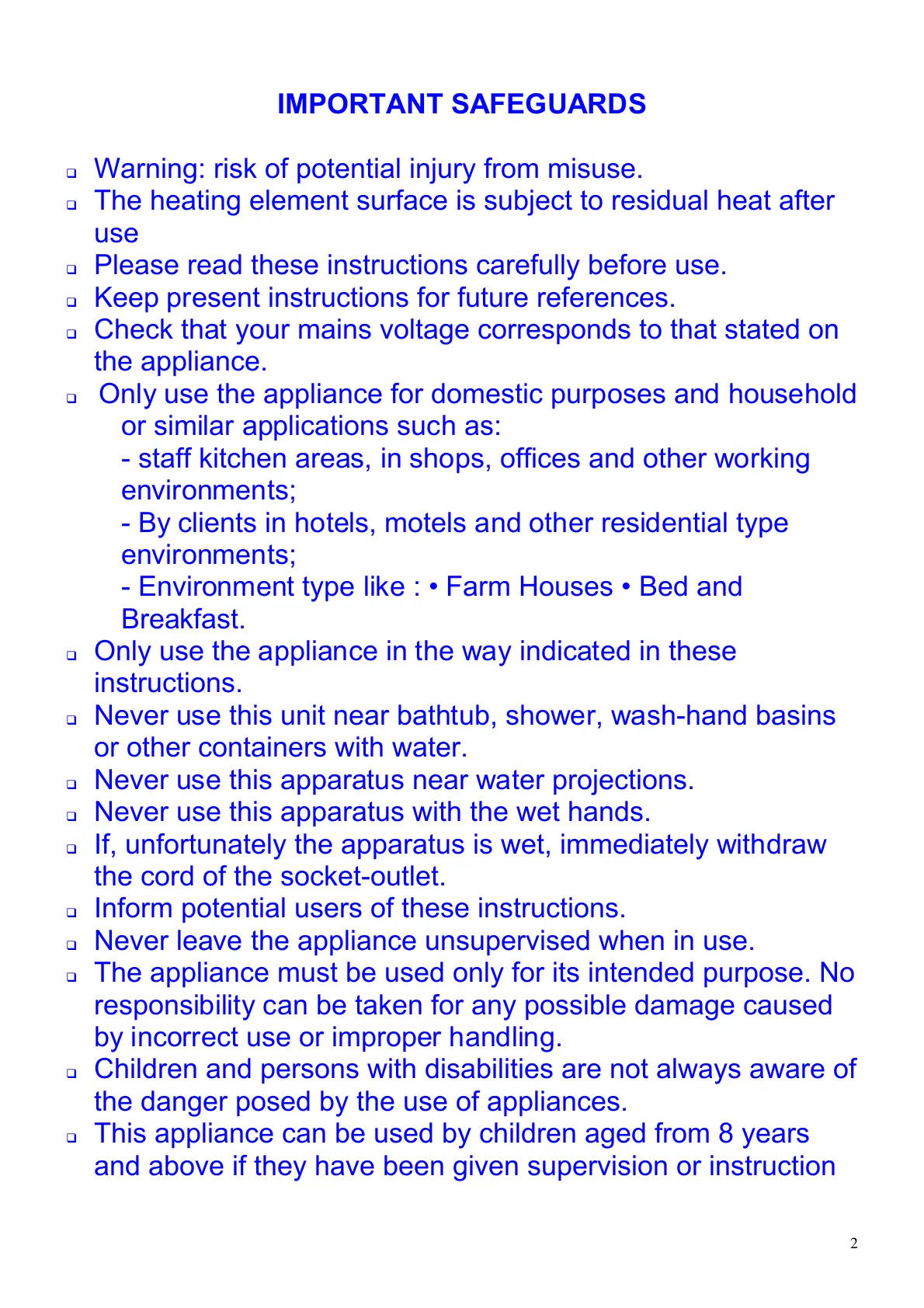 Only use the appliance for domestic purposes and household