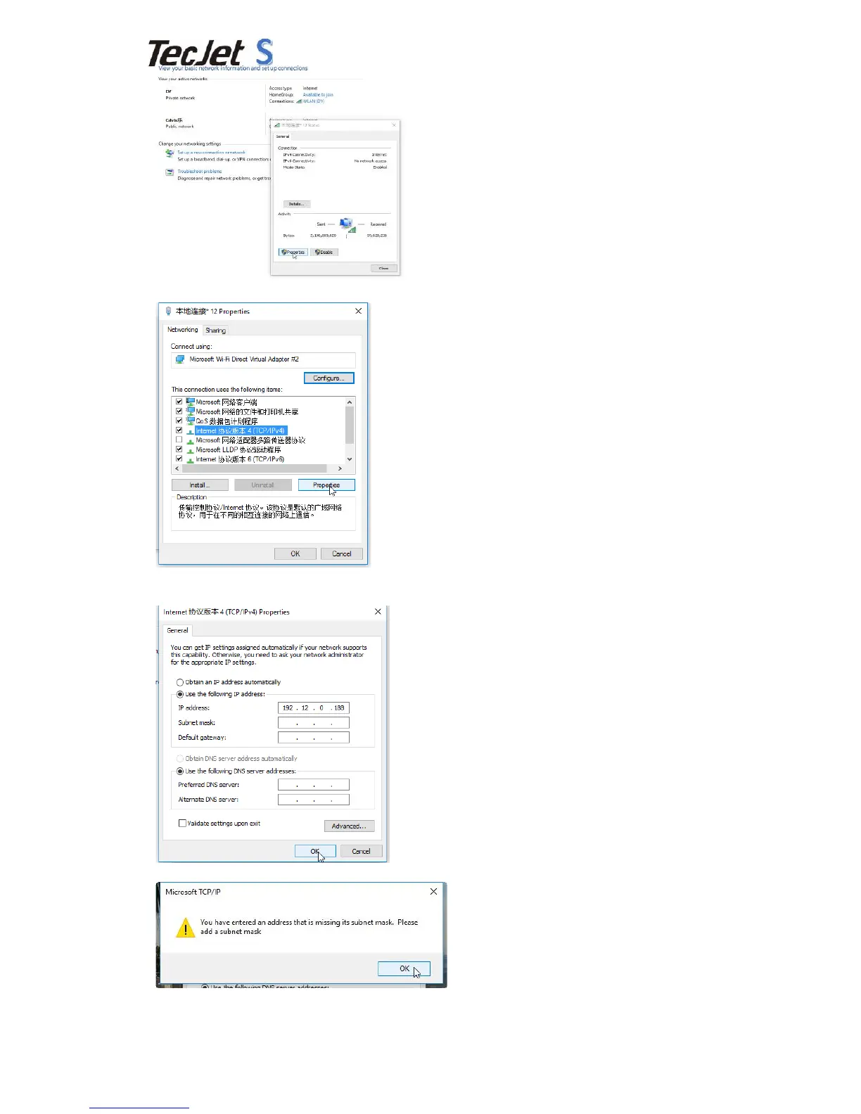 Step"nine:The"Subnet"Mask"will"default"to"”255"255"255"0”automatically"and"press"ok"and"finished."