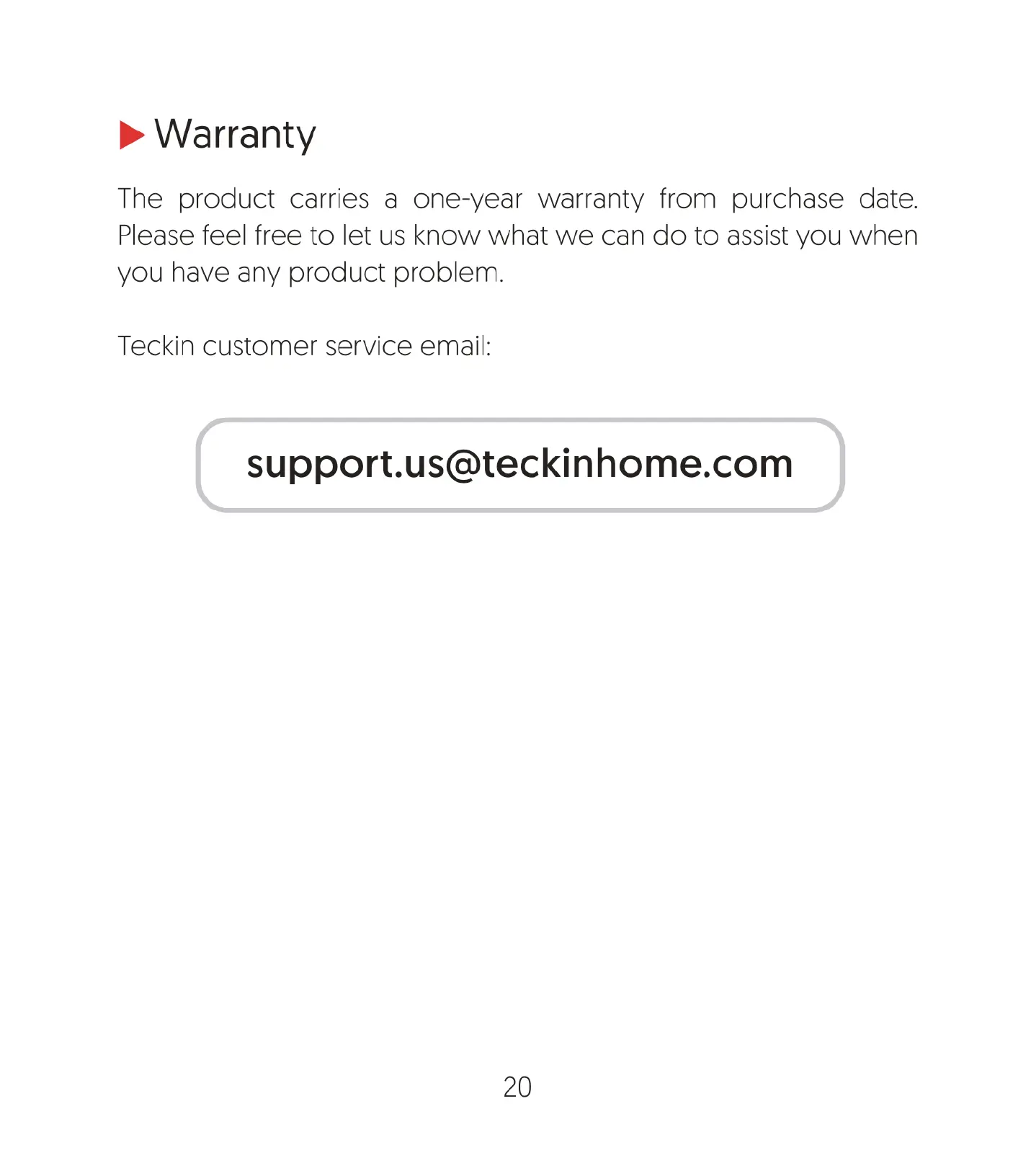 Teckin SP20 - Warranty Information