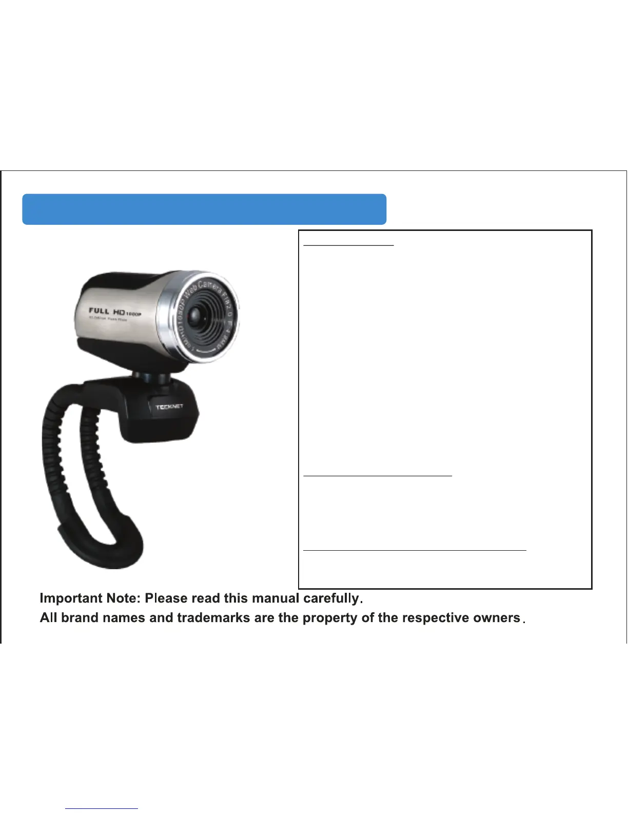 TeckNet C018 1080P Web Camera User Manual