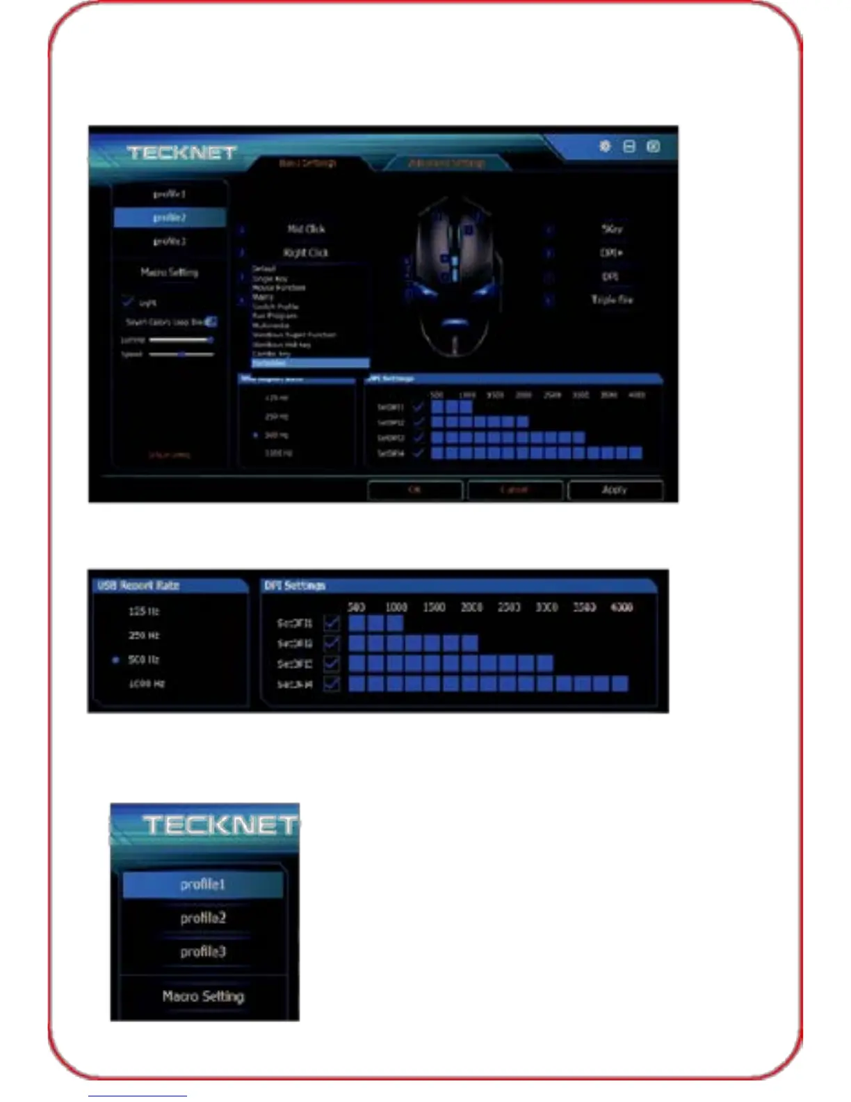 TeckNet GM289 offers three profile for user, you can set the profiles as