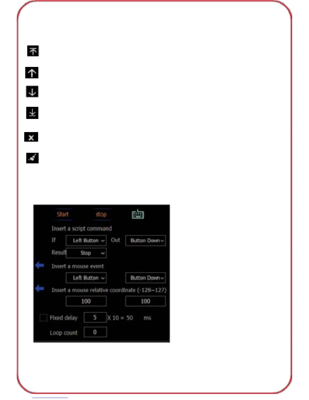 4) You can insert script command or mouse event, or relative coordinate