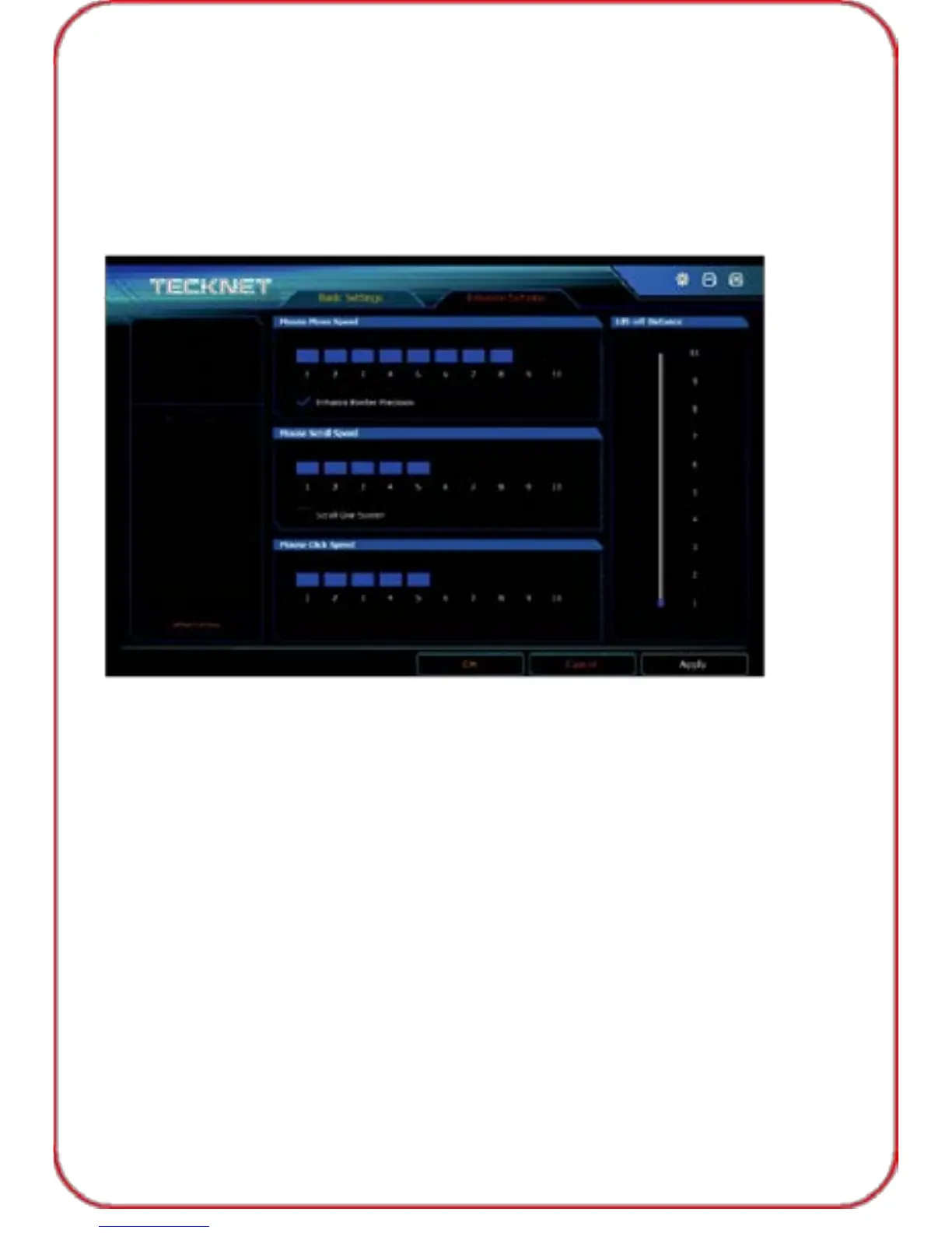 You can adjust the mouse move speed, scroll speed, click speed, and lift-