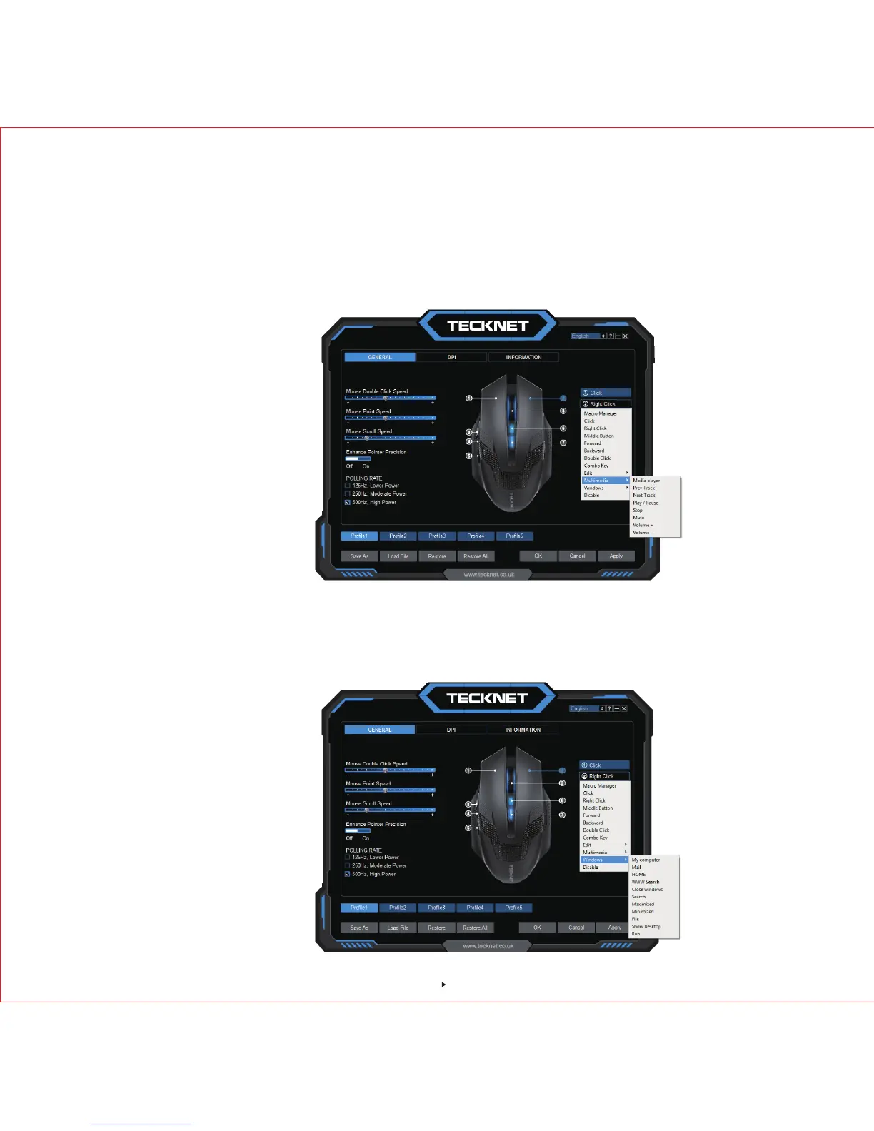 If you would like to set up for “Right Button”, click it first and a drop-down menu will show up, select