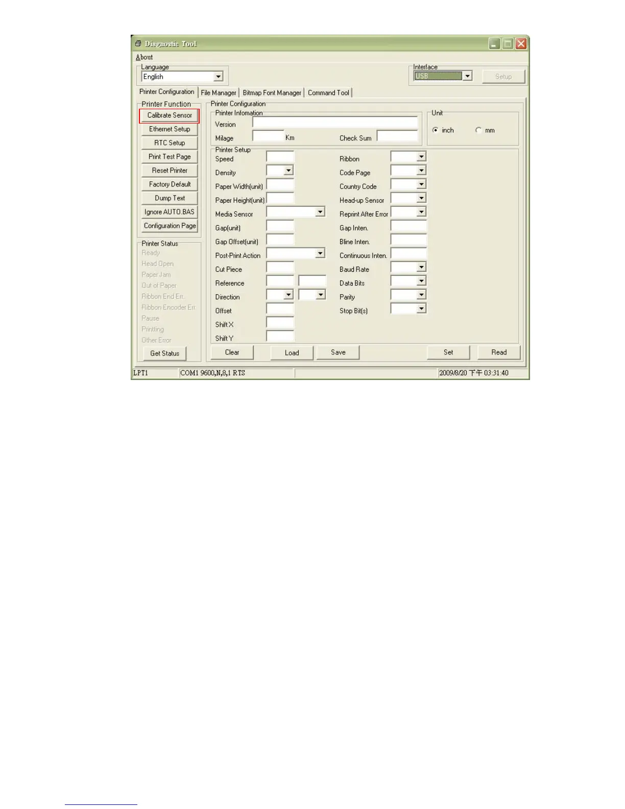 Note: Please calibrate the gap/black mark sensor when changing media.