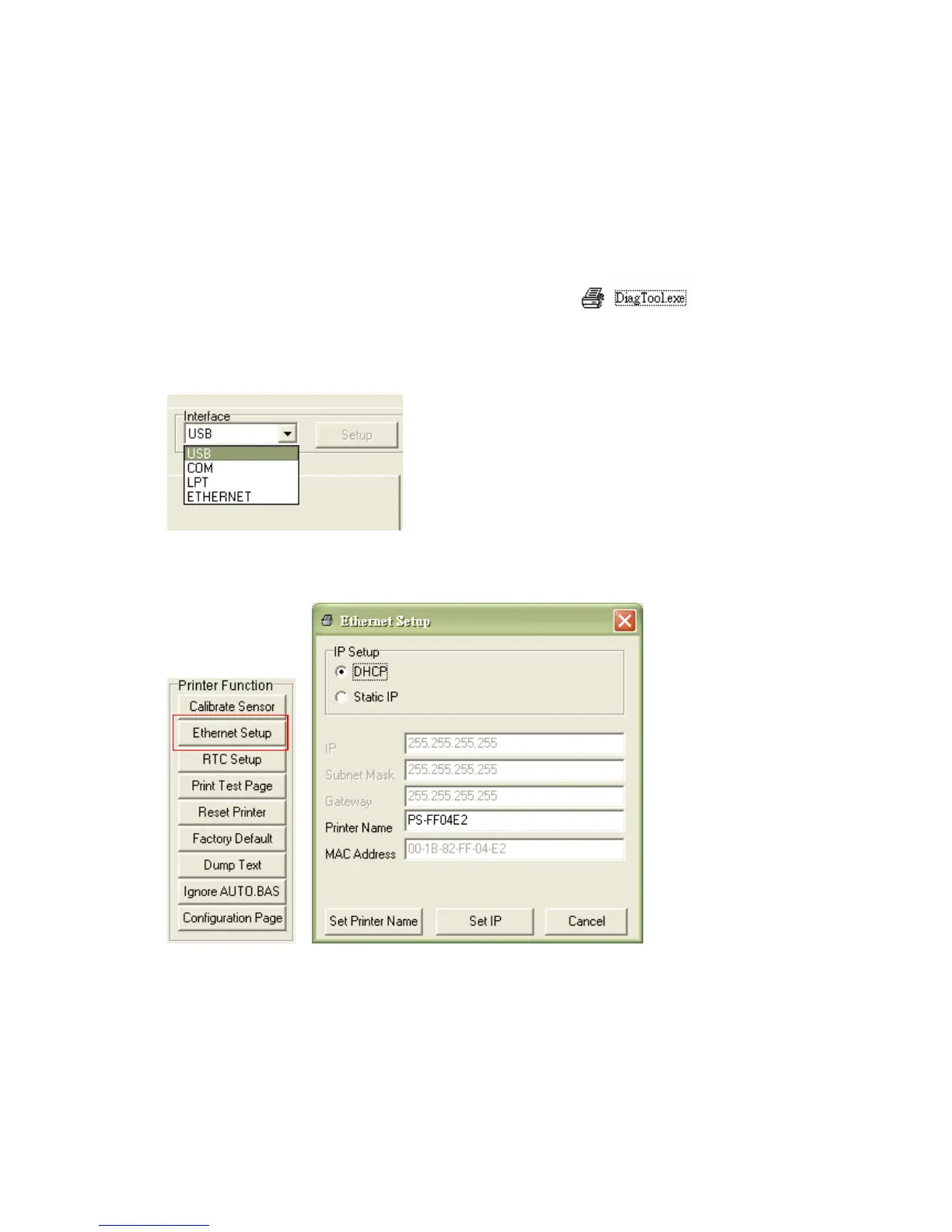 5. Click on the “Ethernet Setup” button from “Printer Function” group in Printer Configuration